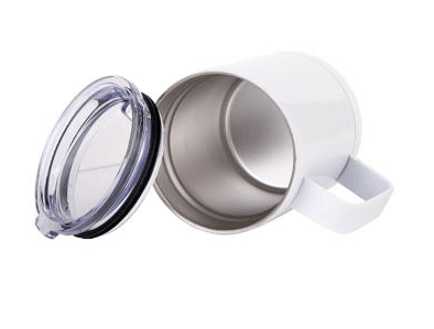 The Stainless Steel Vacuum-Insulated Mug, 10 oz., combines the convenience of having drinks that stay hot or cold for hours.